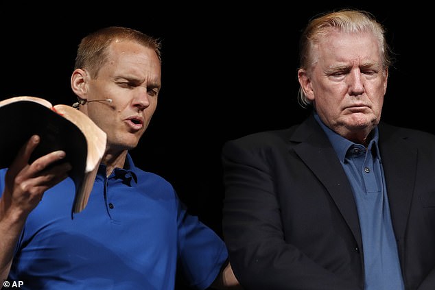 Tổng thống Trump đứng trên sân khấu với đứng trên sân khấu với mục sư David Platt.