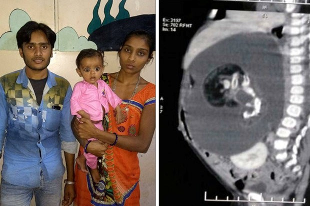 Một nhóm 6 bác sĩ ở bang Gujarat, Ấn Độ đã thành công trong việc loại bỏ khối u dị hình nằm giữa ruột non và thận của bé gái Prinsa Rathava, 7 tháng tuổi.