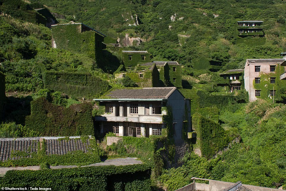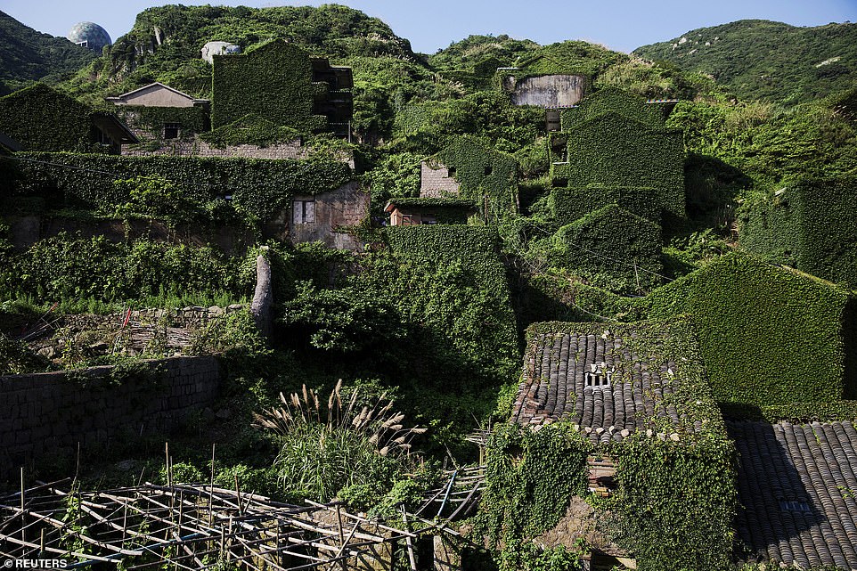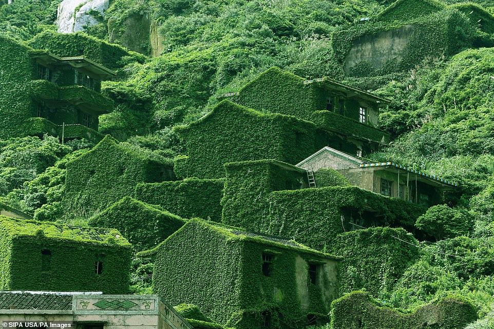 Vẻ hoang sơ của ngôi làng bị bỏ hoang gần ba thập kỷ, nhà cửa phủ kín dây leo.