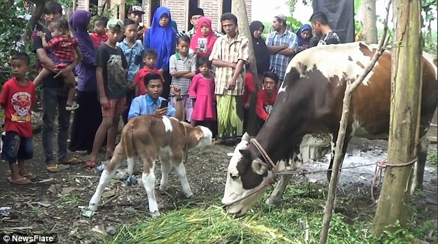 Đây không phải là lần đầu tiên người dân Indonesia được trông thấy những con vật mang hình dạng kỳ dị. Hồi đầu tháng 1/2018, người xem vô cùng ngạc nhiên trước đoạn clip một chú bò đứng thẳng và đi bằng hai chân y như con người. Nguyên nhân là do bị cụt 2 chân bẩm sinh nên nó phải tìm cách để di chuyển. Tuy vậy, con vật không được mọi người chào đón mà bị xua đuổi như “tà ma”.