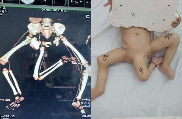 Bé trai có 3 chân ngay từ khi mới sinh ra. Video: Chinanews