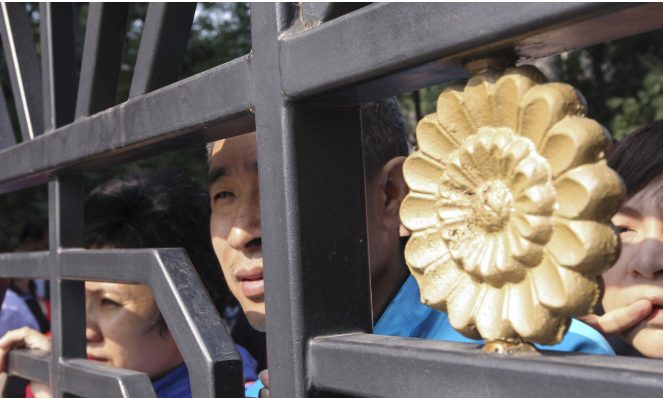 Các bậc phụ huynh nhìn qua cổng trường thi nơi kỳ thi Cao Khảo đang diễn ra ngày đầu tiên.