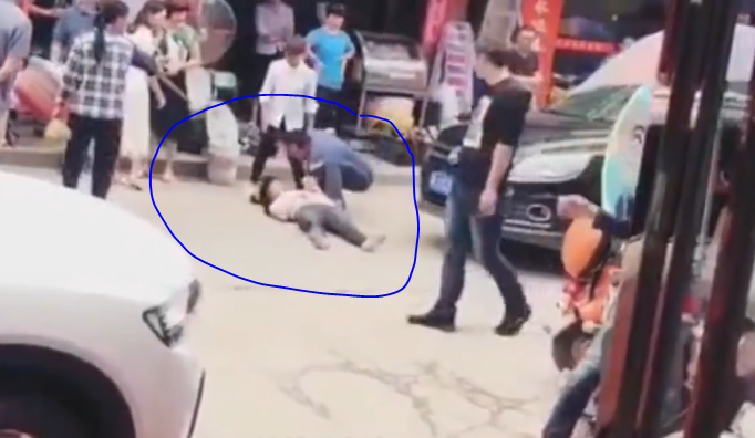 Người chồng lôi vợ ra giữa chốn đông người để đánh. Ảnh: Pearvideo