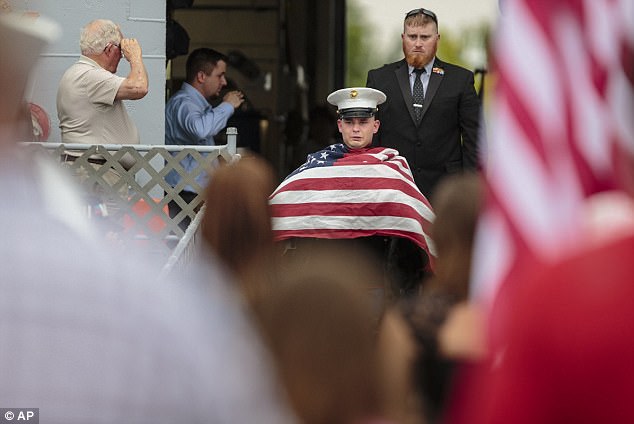 Hàng trăm người đã đến tạm biệt Cena. Chú được khoác trên mình áo vest hải quân ở thành phố Muskegon.