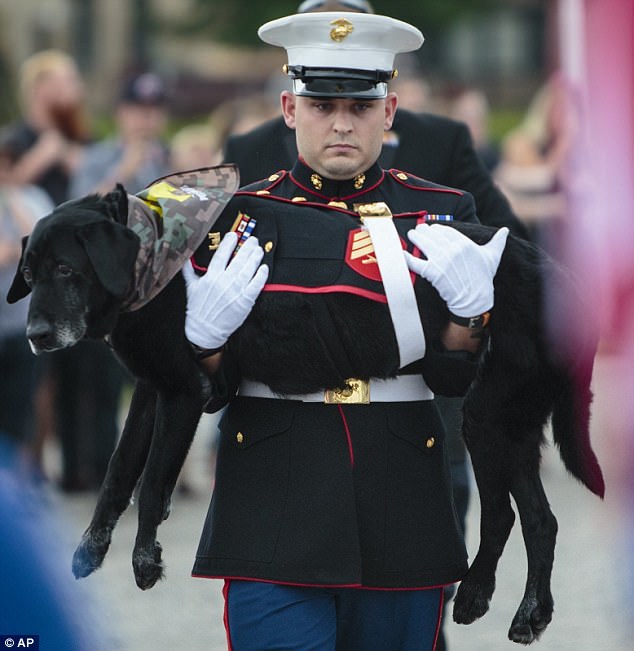 Liên đoàn Cảnh sát Biển Mỹ và những bộ ngành khác cũng tham dự lễ tiễn biệt chú chó dũng cảm Cena.