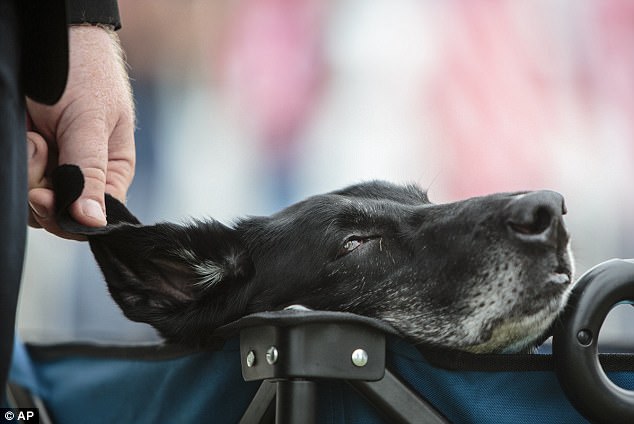 Tại buổi lễ tiễn biệt, anh DeYoung đã đưa chú chó lên chiếc xe Jeep mui trần, được trang trí cẩn thận, mang dòng chữ ‘Đội phản ứng ung thư’.