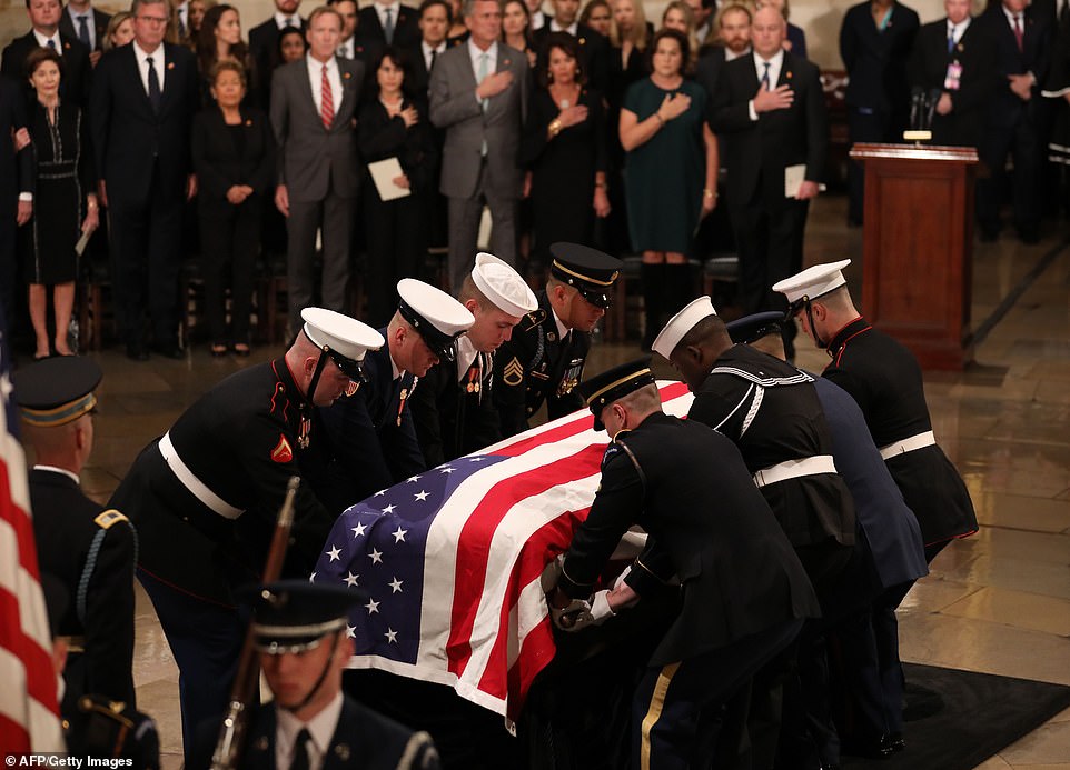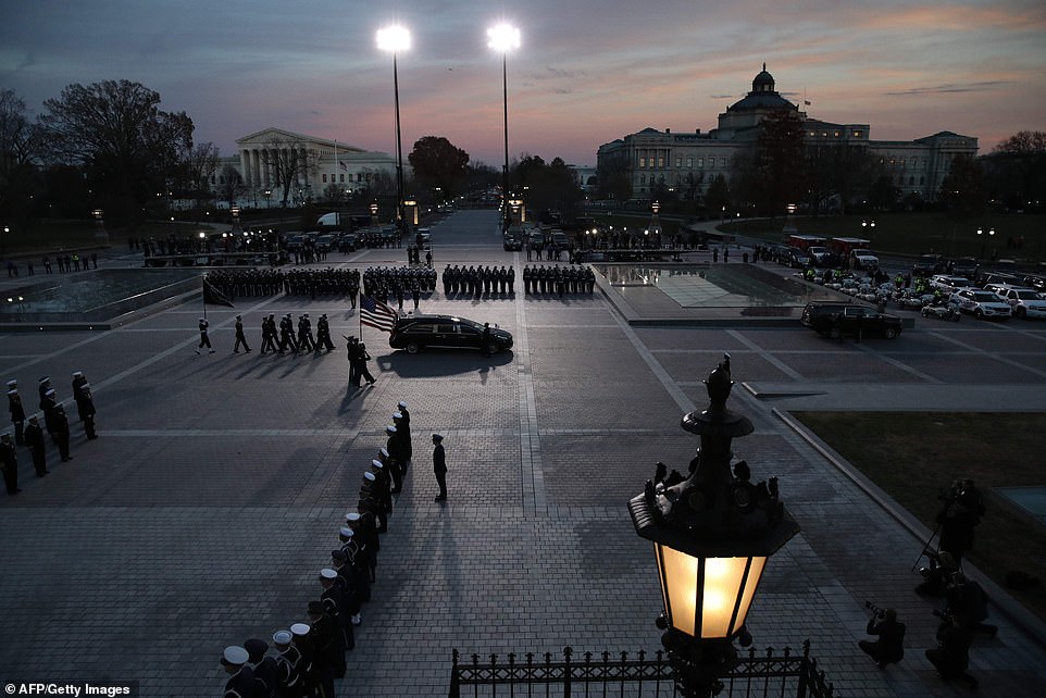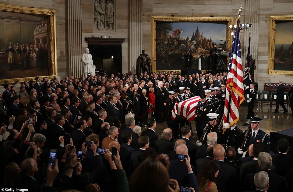 Các thành viên trong nội các của cố Tổng thống Bush, sĩ và thẩm phán Tòa án Tối cao đã tới viếng vị tổng thống thứ 41 của nước Mỹ. Các quan chức đều đặt tay lên trái tim để tưởng nhớ ông khi linh cữu phủ quốc kỳ được đặt dưới mái vòm Đồi Capitol. Tổ chức tang lễ dưới mái vòm Đồi Capitol là một nghi thức dành để tôn vinh “công dân xuất chúng của nước Mỹ”.