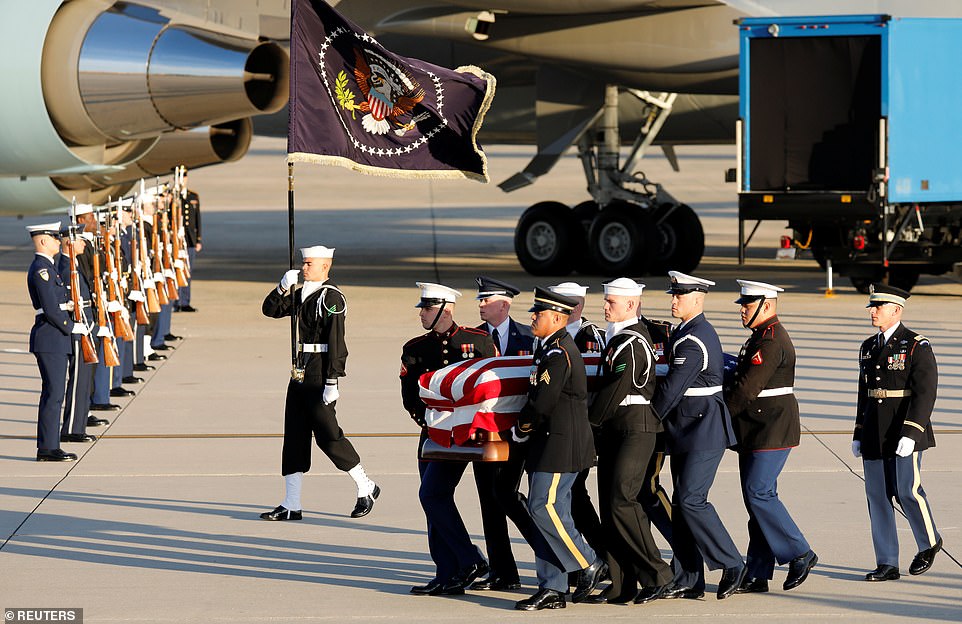 Chuyên cơ Không Lực Một đưa linh cữu của cố tổng thống Mỹ George H.W Bush từ Texas hạ cánh lúc 15h30 ngày 3/12 tại căn cứ quân sự chung Andrews, nơi một chiếc xe Cadillac phủ cờ Mỹ đã được bố trí sẵn để đưa linh cữu ông Bush tới Đồi Capitol (tòa nhà quốc hội Mỹ) ở thủ đô Washington. Gia đình Bush do con trai cả kiêm cựu tổng thống George W. Bush dẫn đầu đi cùng linh cữu trên chiếc Không Lực Một.