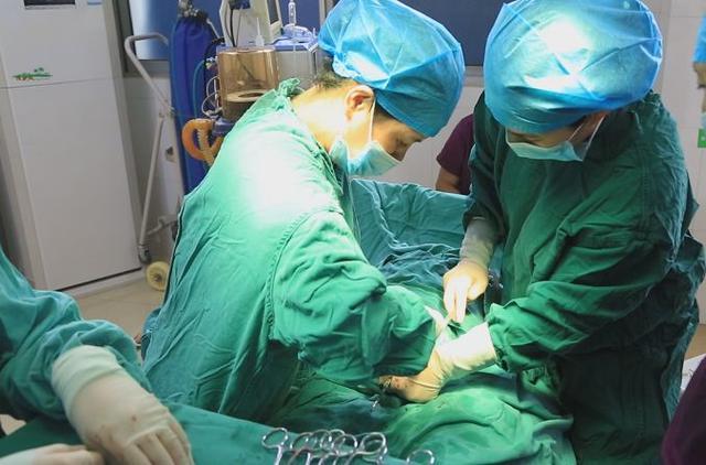 Các bác sĩ đang tiến hành mổ bắt con.