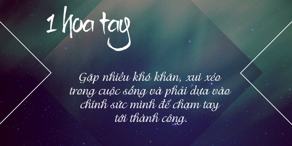 Những người có 1 hoa tay thời vận không được tốt. Họ thường gặp nhiều điều khó khăn, xui xẻo trong cuộc sống và phải dựa vào chính sức lực của mình để đạt được thành tựu.