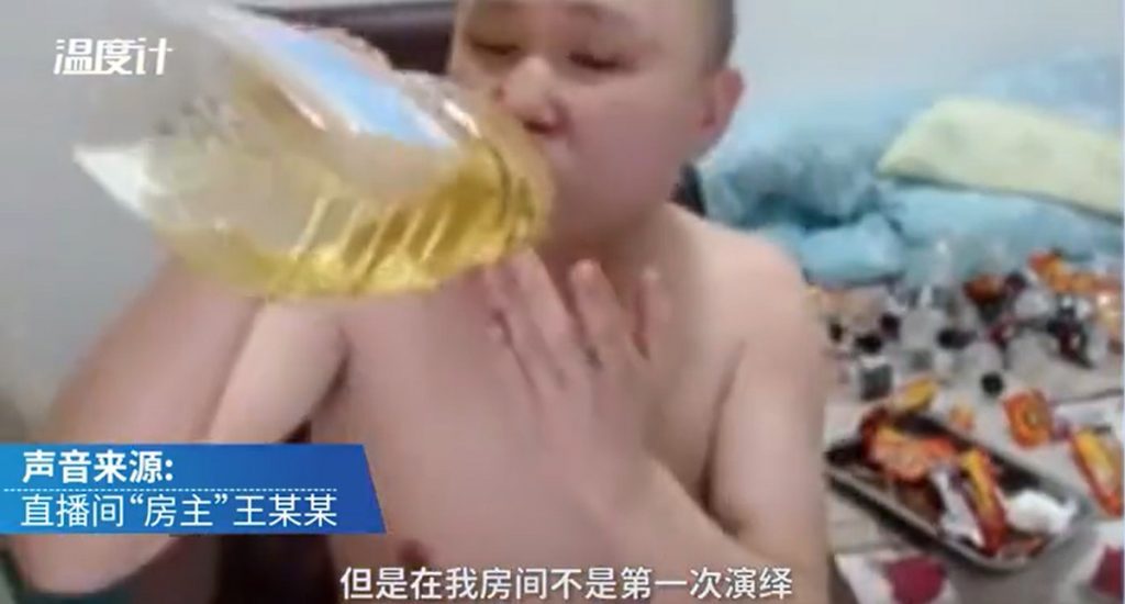Theo đó, vào mỗi đêm, Chu lại lên mạng xã hội Liaoliao để livestreeam, quay cảnh uống bia rượu. Hầu hết trong buổi livestream, Chu thường uống nhiều loại rượu khác nhau, nhưng cũng có lần anh đã uống trọn một can dầu để gây ấn tượng với người xem, hy vọng họ sẽ thả nhiều tiền hơn.