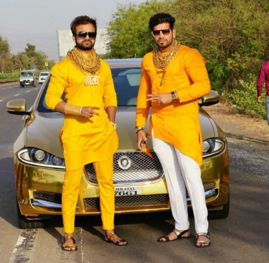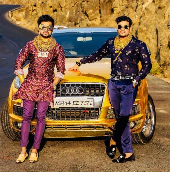 Sunny Waghchaure (trái) bên cạnh chiếc Audi Q7 dát vàng.