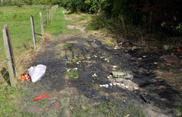 Hiện trường nơi tìm thấy chiếc xe Audi bị đốt cháy hoàn toàn.
