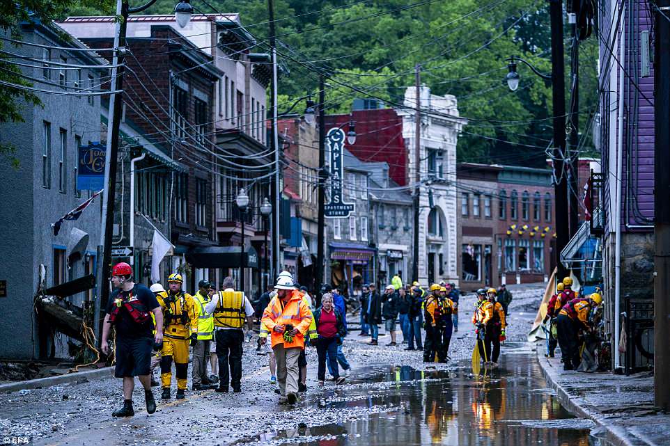 Lũ quét dữ dội khiến Thống đốc bang Maryland Larry Hogan phải thông báo tình trạng khẩn cấp qua mạng xã hội Twitter: “Đây là một tình huống cực kỳ nguy hiểm, đe dọa đến tính mạng con người“.