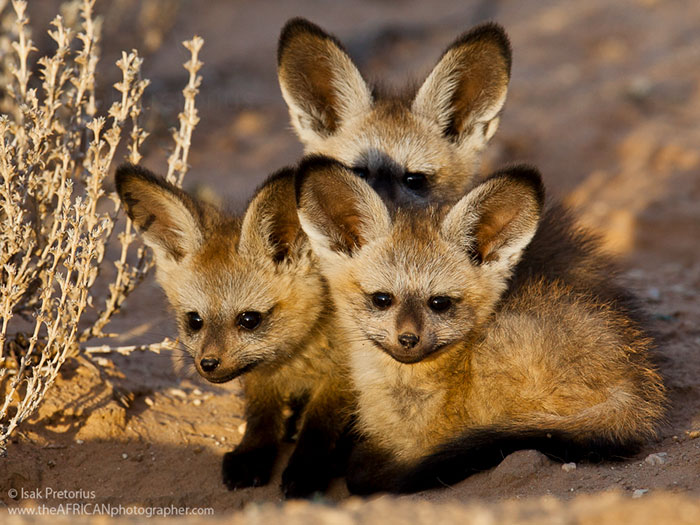 Ba chú cáo tai dơi có vẻ ngượng ngùng khi được chụp ảnh.