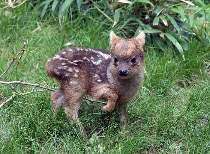 Chú hươu nhỏ Pudu ngơ ngác khi lần đầu nhìn thấy máy ảnh.