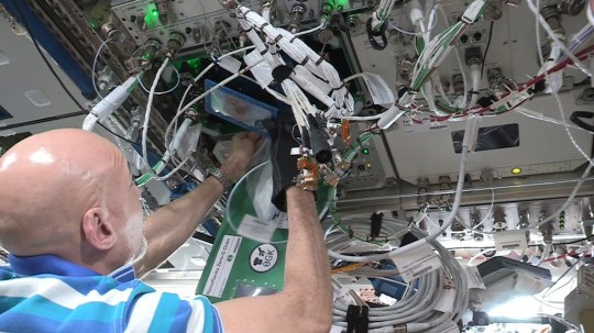 Chỉ huy Luca Parmitano nướng bánh quy trên Trạm Vũ trụ Quốc tế.