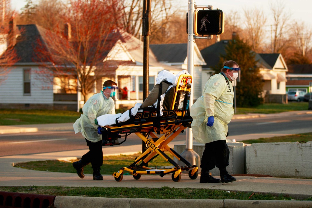 Nhân viên y tế bang Indiana đưa một người có triệu chứng nhiễm virus corona đến bệnh viện.