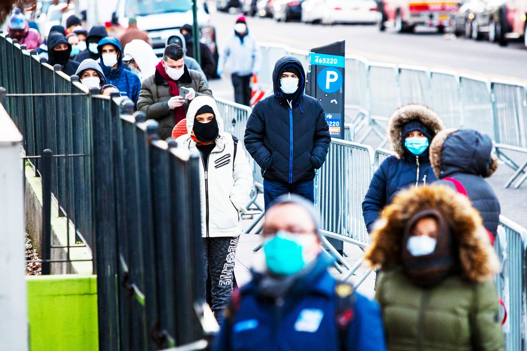 Người dân New York xếp hàng để lấy mẫu xét nghiệm tại Bệnh viện Elmhurst.