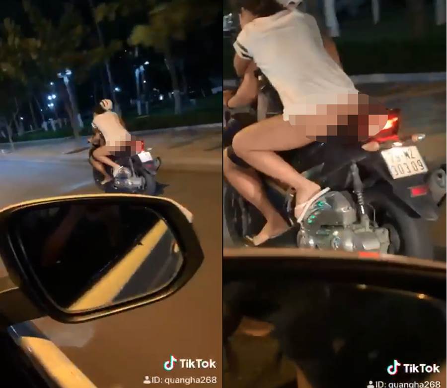 Cụ thể, một tài xế ô tô khi đang lái xe trong thành phố Nha Trang vào đêm muộn đã nhìn thấy cảnh cô gái trẻ ngồi trên chiếc xe máy đi bên cạnh hoàn toàn… không mặc quần. Cô gái này dường như đang say, không đội mũ bảo hiểm, hai tay vẫn quấn chặt lấy cổ chàng trai ngồi phía trước.
