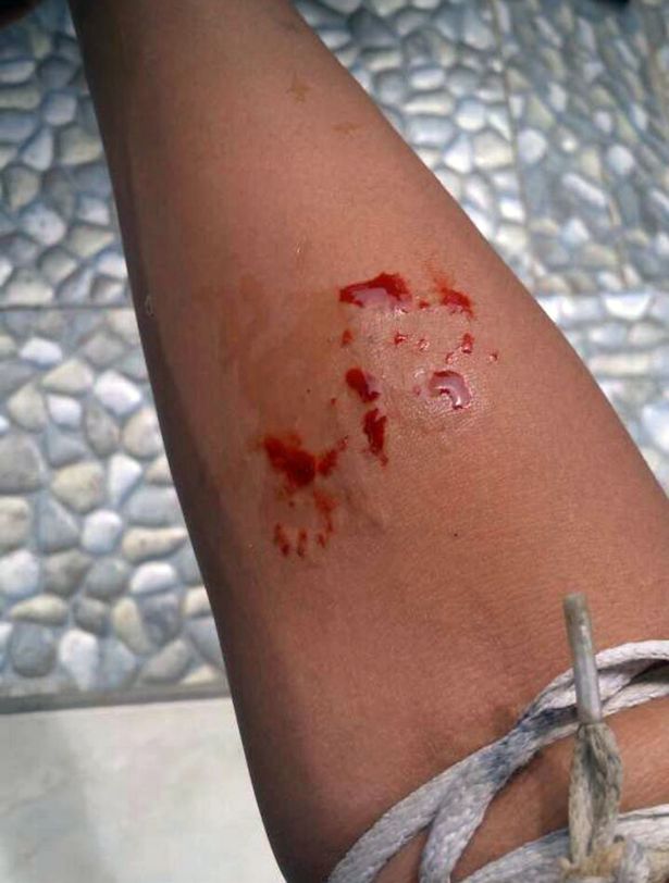 Trong bức ảnh này, cậu đã dùng một sợi dây giày để ngăn chặn nọc độc phát tán.