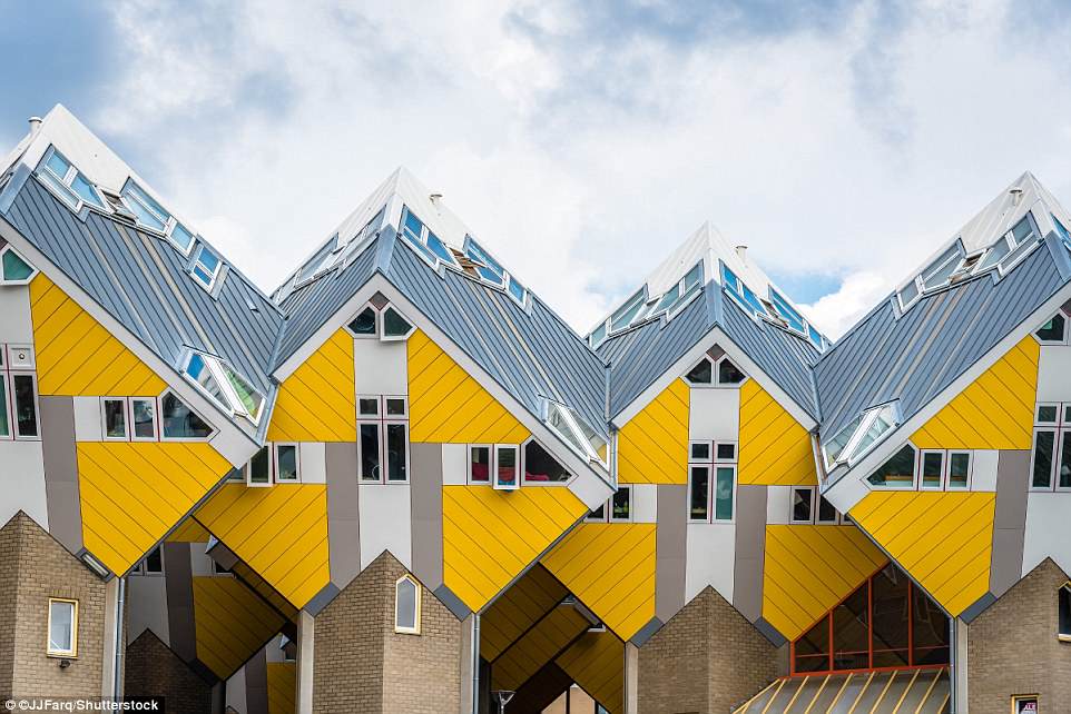 Khu nhà hình lập phương độc đáo này là công trình kiến trúc tại thành phố Rotterdam, Hà Lan. Nó được xây dựng bởi kiến trúc sư Piet Blom vào năm 1984. Ban đầu, mục đích của nó là để giải quyết vấn đề mật độ dân số quá cao, trong khi đó không gian tại thành phố lại quá hạn hẹp. Khu nhà bao gồm 40 căn hộ riêng biệt, xây dựng liền kề nhau, trong đó có 38 căn nhỏ và hai căn lớn. Mỗi khối lập phương được xây nghiêng góc 45 độ, bên dưới là trụ có hình lục giác. Ảnh: Shutterstock