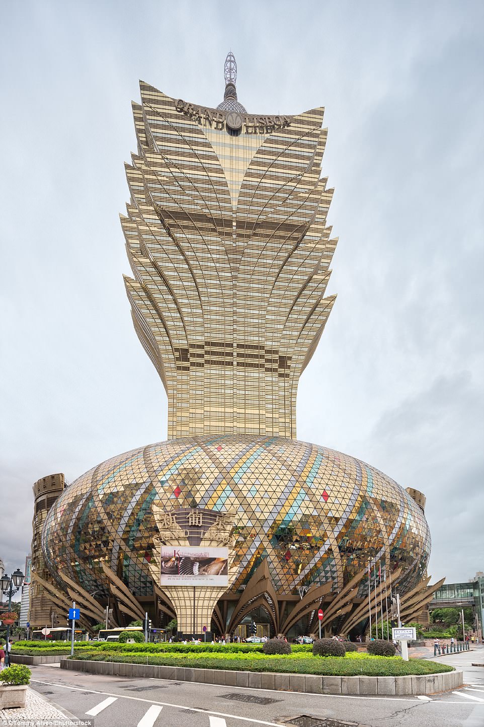 Grand Lisboa là khu tổ hợp khách sạn kiêm sòng bạc ở Ma Cao (Trung Quốc). Nhìn từ bên ngoài, nơi đây trông giống như một bó hoa rực rỡ, đặc biệt là vào buổi tối. Khu sòng bạc Grand Lisboa có hơn 390 bàn chơi và 880 máy đánh bạc cùng nhiều vũ công trình diễn. Ảnh: Shutterstock