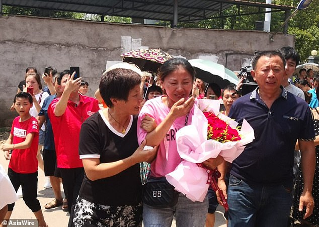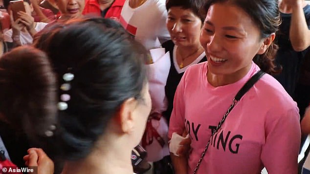 Jin Ting (hiện tên là Ping Ping) nghẹn ngào bên mẹ trong ngày đoàn tụ.