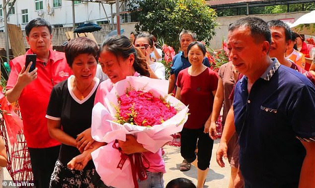 Cô ngập trong hạnh phúc khi được người thân chào đón.