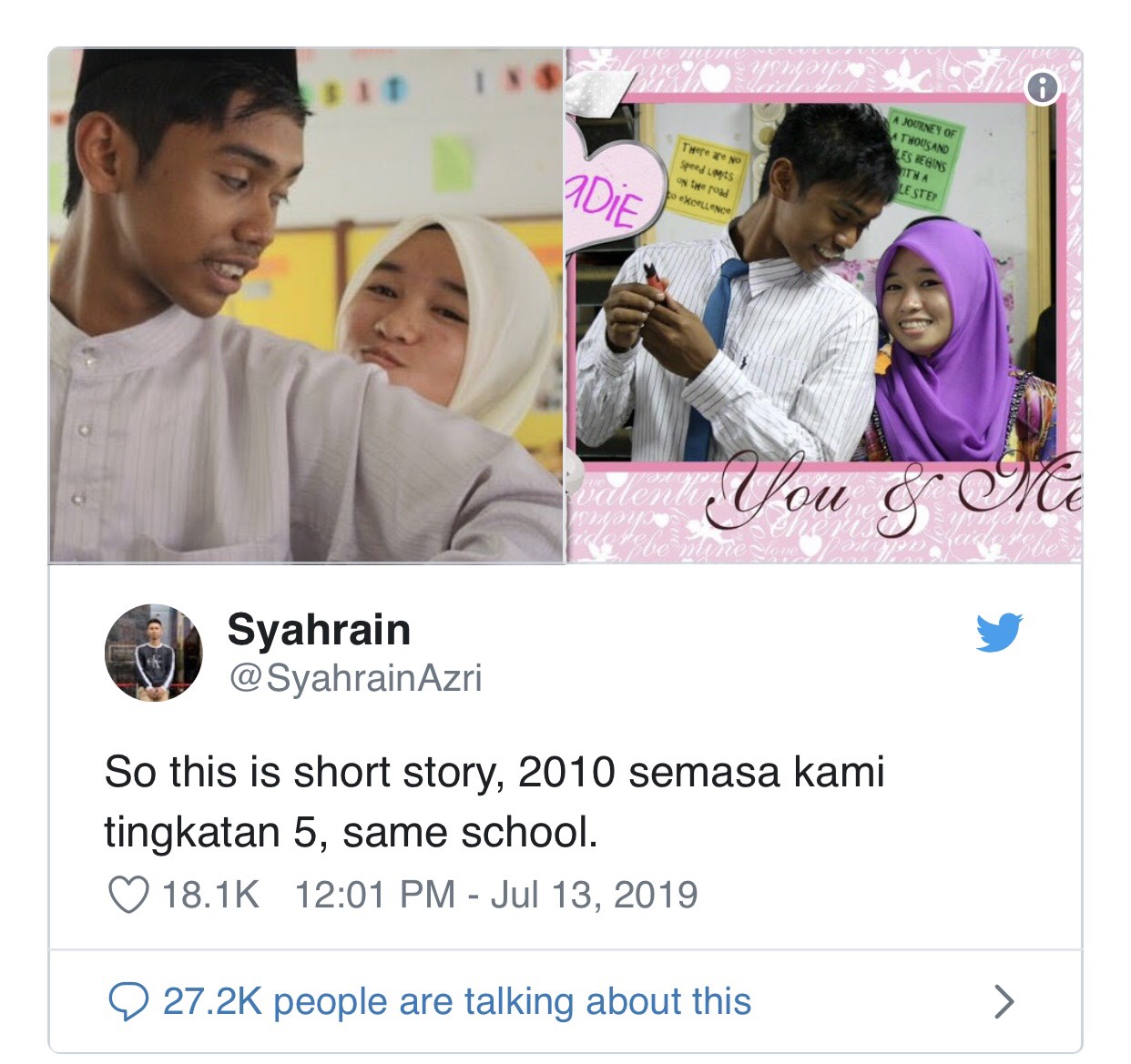 Syahrain viết: “Đây thực là một câu chuyện ngắn ngủi, năm 2010, chúng tôi học cùng trường, cùng lớp số 5″.
