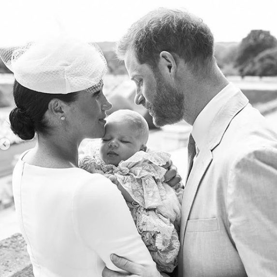 Bức ảnh vợ chồng Hoàng tử Harry bên con trai được công bố trong lễ rửa tội bé Archie hôm 7/7.