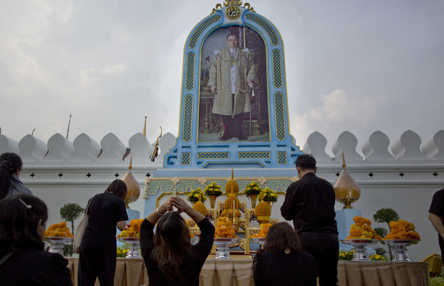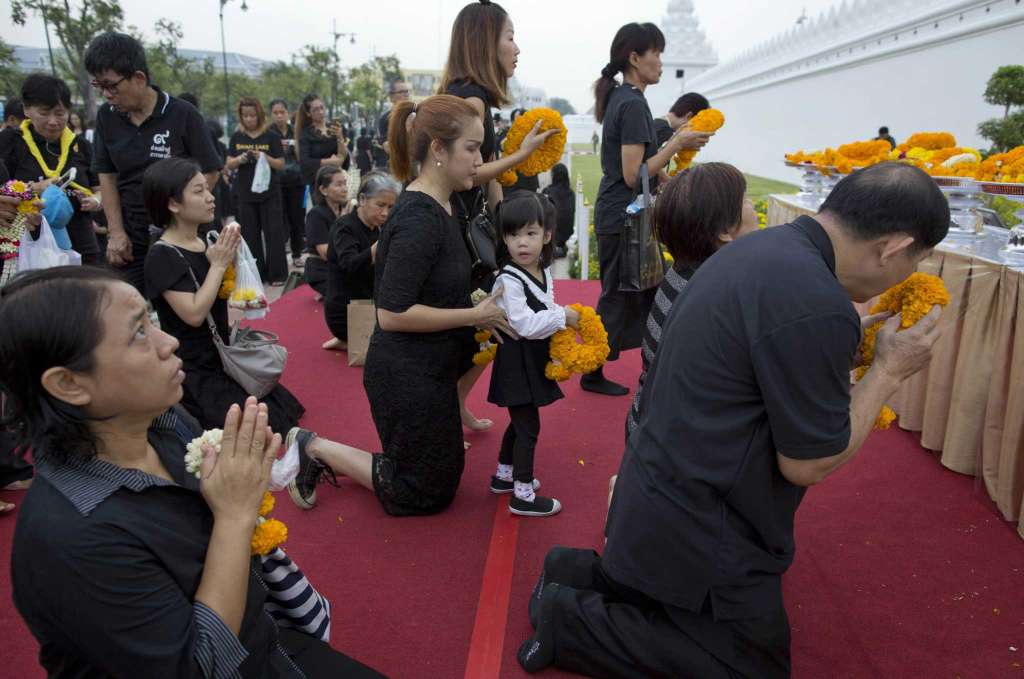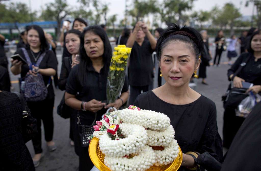 Hàng nghìn người dân mang theo vòng hoa tới tham dự buổi kỷ niệm một năm ngày mất của vua Bhumibol Adulyadej.