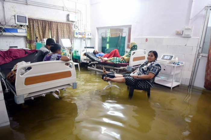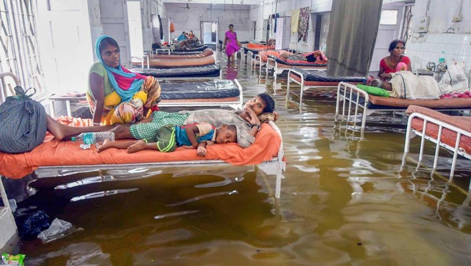 Theo Hindustantimes, mưa lớn ở Patna, Ấn Độ trong 2 ngày 28 và 29/7 khiến cuộc sống của cư dân tại đây bị ảnh hưởng rất lớn, nhất là ở những vùng đất thấp như bệnh viện thuộc trường Đại học Y Nalanda.
