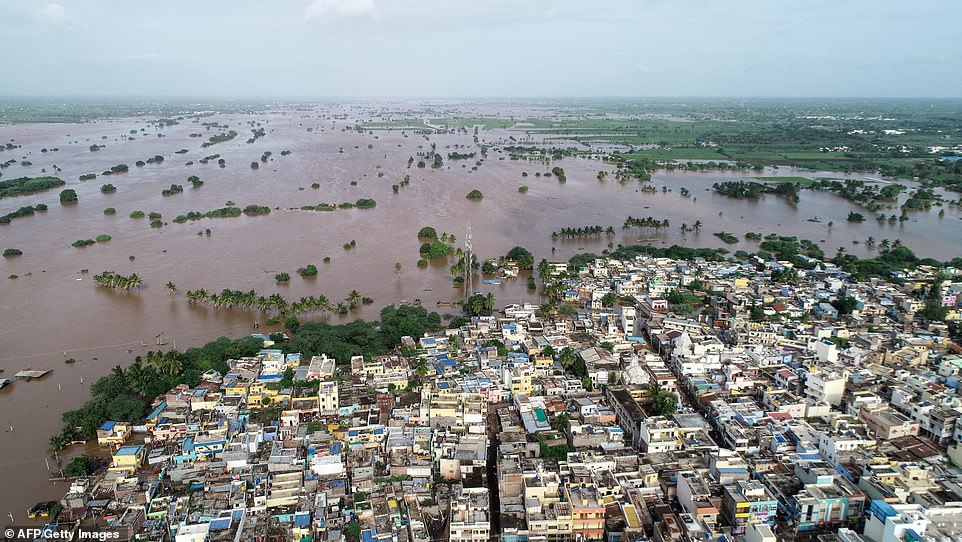 Khu vực Jamkhandi Taluk thuộc quận Karnataka của bang Belgaum ngập giữa mênh mông biển nước.