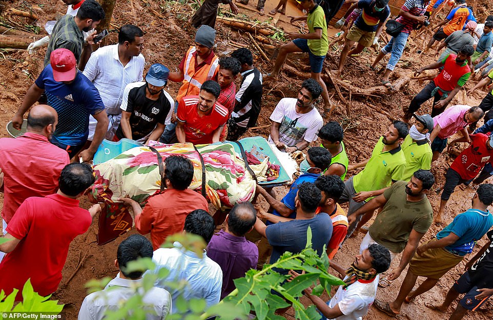 Nhân viên cứu hộ chuyển một thi thể tử nạn sau vụ lở đất tại Kavalappara, quận Malappuram thuộc bang Kerala, miền nam Ấn Độ.