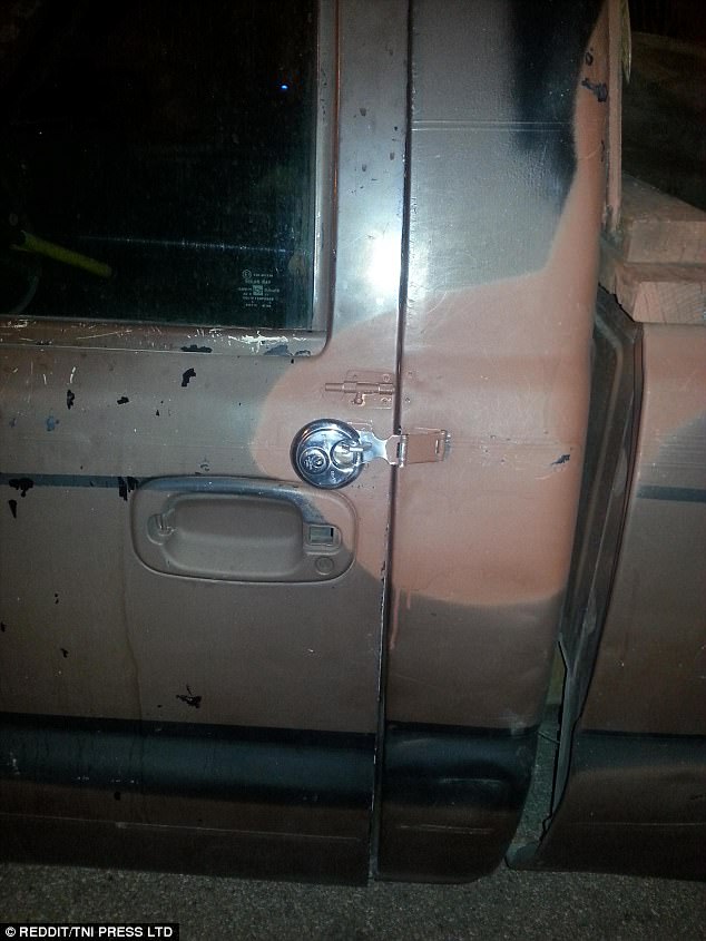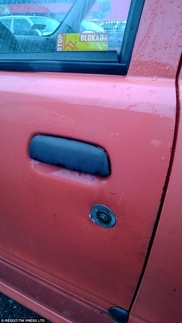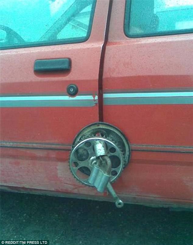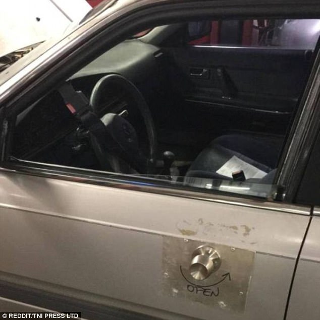 Có lẽ chủ của chiếc xe hơi này là một thợ cơ khí. Anh đã cắt một phần của chiếc xe sau đó hàn gắn lại ở cửa xe. Biện pháp này được cho là khá kỳ lạ và mất nhiều thời gian gia công.
