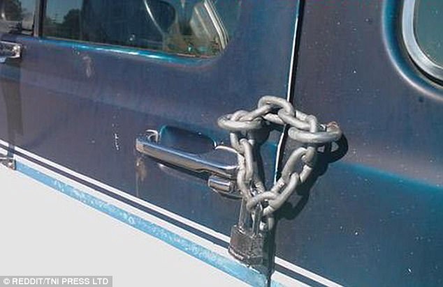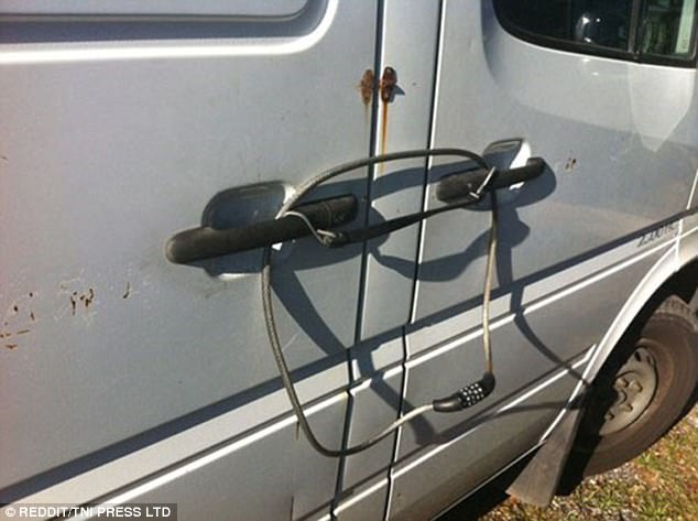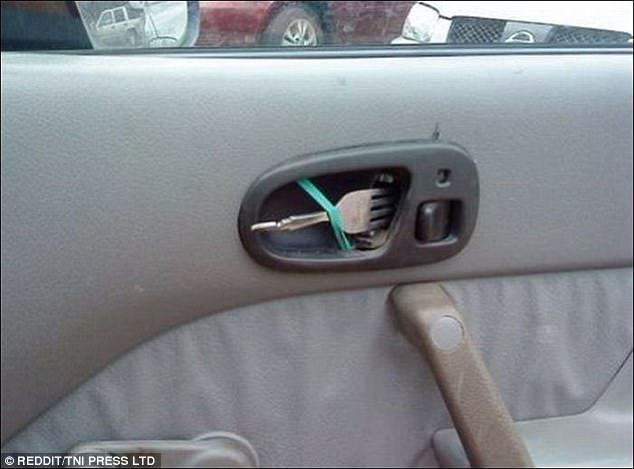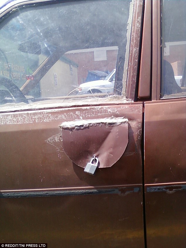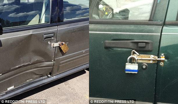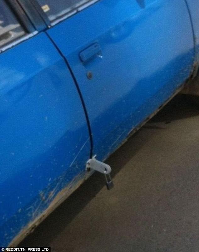 Người ta còn sáng tạo đến mức dùng cả chốt cửa phòng tắm để khóa cửa xe.