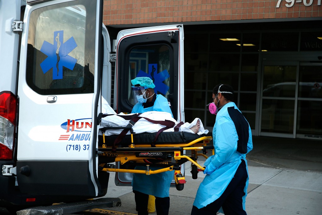 Một bệnh nhân nhiễm COVID-19 được chuyển đi từ Bệnh viện Elmhurst ở New York.