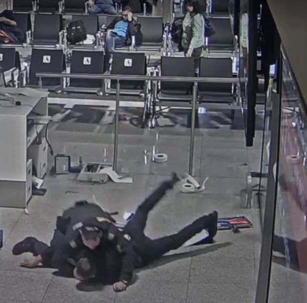Trước thái độ không hợp tác của nam hành khách, nhân viên an ninh đột ngột kéo mạnh tay, mượn đà xoay người để quật anh ta ngã lăn ra đất. Phát ngôn viên của sân bay cho biết: “Nhờ phản ứng nhanh nhạy của nhân viên an ninh mà tình hình đã được khống chế”. Người đàn ông hung hăng này đã bị tống đến đồn cảnh sát và nhận cáo buộc gây rối an ninh trật tự.