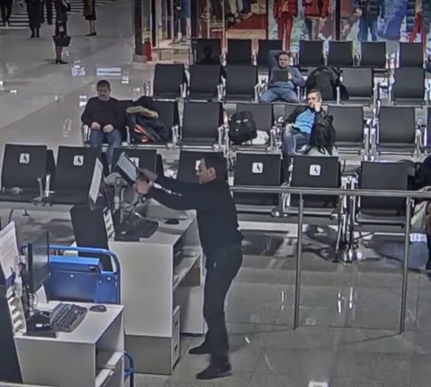 … Nam hành khách bắt đầu phá hoại tài sản sân bay.