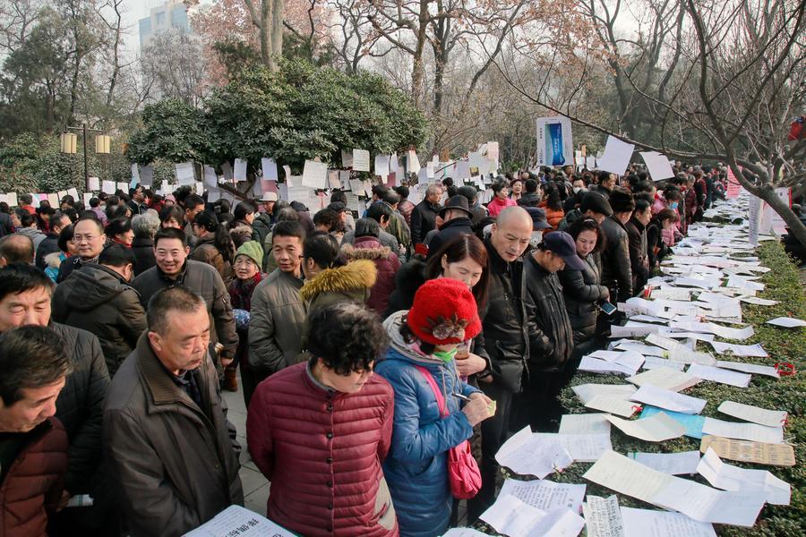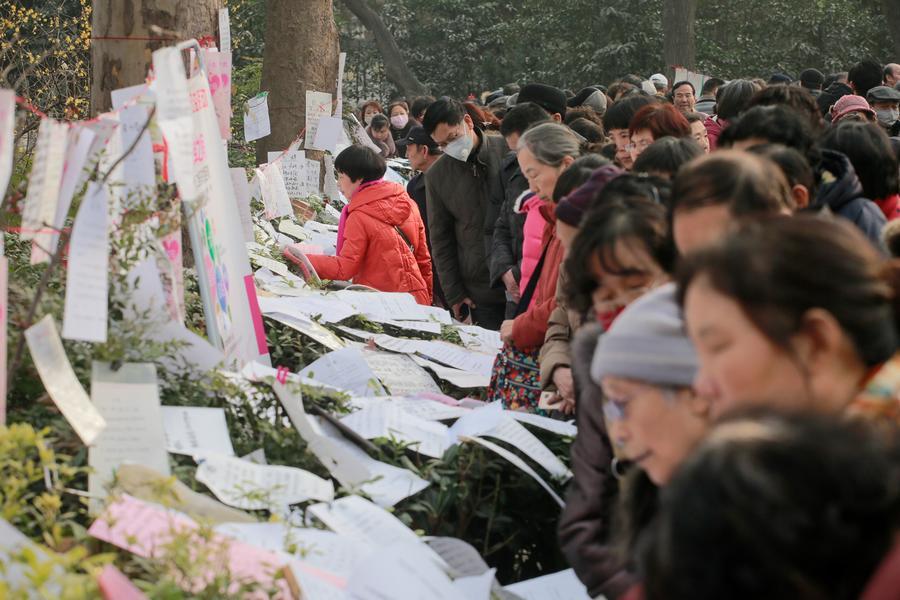 Hôm 21/1, đông đảo phụ huynh đã tập trung tại công viên Cách mạng ở thành phố Tây An, tỉnh Thiểm Tây, Trung Quốc, để tham gia lễ hội mai mối. Suốt nhiều thập kỷ, hôn nhân ở Trung Quốc là do các ông mai bà mối hay gia đình sắp đặt. Ở một số nơi, phụ huynh đem lý lịch con mình dán trên cây và cột đèn nhằm tìm “nửa kia” cho con.