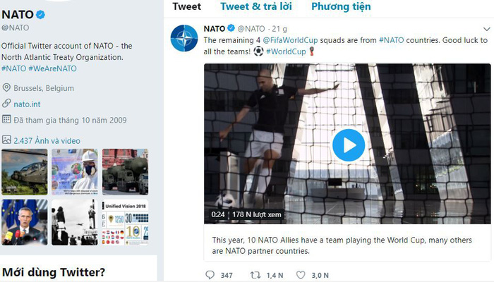 Dòng trạng thái kèm video mà NATO đăng tải trên Twitter.