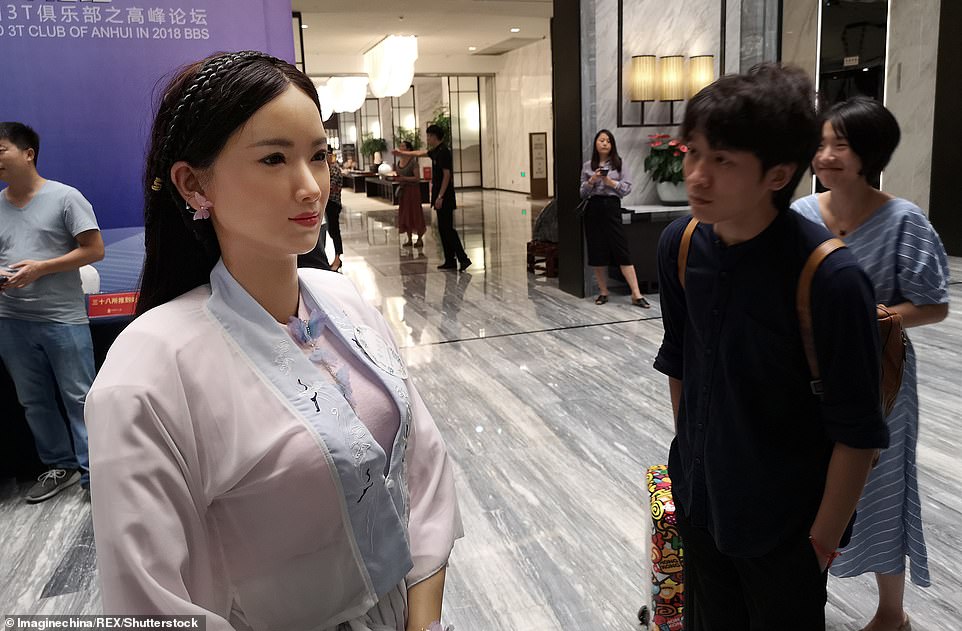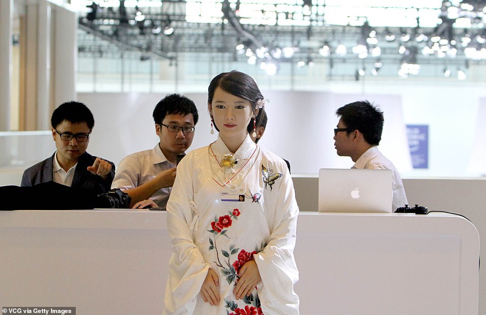 Hồi tháng 4 năm 2016, Đại học Khoa học và Công nghệ Trung Quốc ở Hợp Phì cũng từng chế tạo robot có tên là Jia Jia có đôi mắt có thể chớp rất tự nhiên và miệng mấp máy nói như người thật. Ảnh: Daily Mail