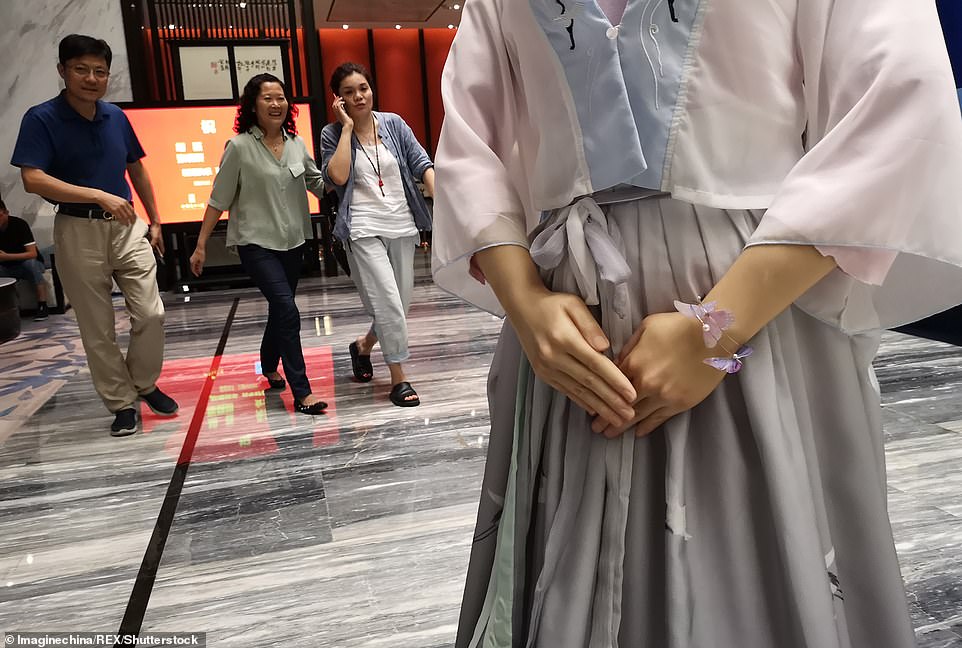 Đây là sản phẩm mà nhà hàng đã đặt công ty Ke Da Guo Chuang có trụ sở tại Hợp Phì thiết kế. Ông Gao - tổng giám đốc của công ty đã cùng với các nhân viên mua linh kiện và lắp ráp robot theo yêu cầu của ông Yin về một nữ robot “nhẹ nhàng, tao nhã và cổ điển”. Ảnh: Daily Mail