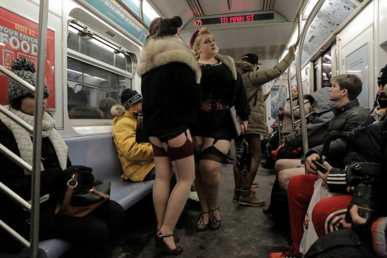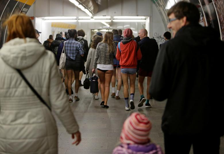 Vào ngày này, những người tham gia đều ăn vận ấm áp ở phần trên nhưng bên dưới không mặc quần dài hay váy.