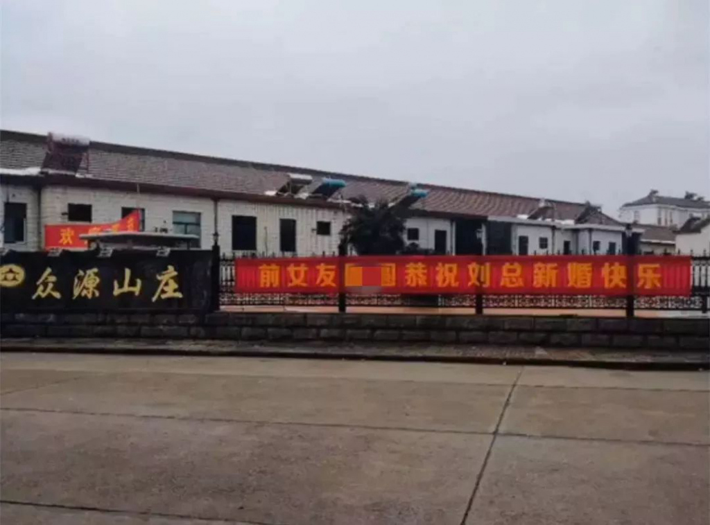 Trên các tuyến đường, mọi người có thể nhìn thấy các tấm băng rôn nổi bật, ghi dòng chữ: “Bạn gái cũ họ X, chúc mừng hạnh phúc Lưu tổng“. Tổng cộng có tất cả 10 tấm băng rôn, ghi đủ tên của 10 người bạn gái cũ, khiến nhiều người không khỏi tò mò về danh tính của người đàn ông này.