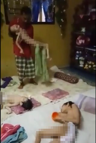 ông Mohd Zain chăm sóc 3 người con tàn tật của mình (Ảnh cắt từ clip)