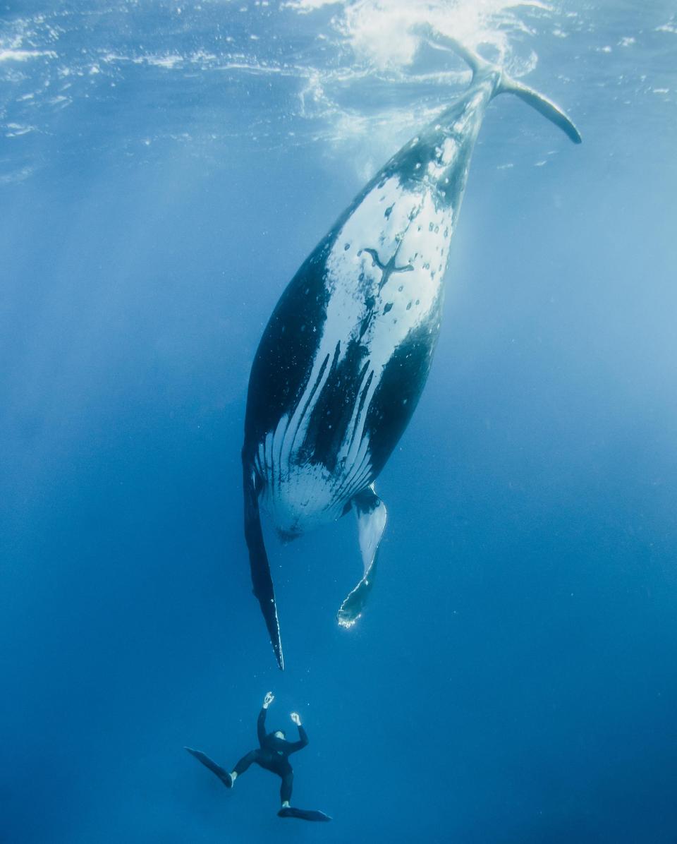 Một nhóm chúng tôi đã lặn xuống biển và trong khoảnh khắc ấy, cá voi đã bơi vòng quanh chúng tôi và chúng tôi đã tận mắt thấy rõ loài sinh vật này. Về cơ bản thì mọi người vẫn đứng cạnh cá voi, nhưng có một anh bạn là đứng gần nhất”, nhiếp ảnh gia David kể lại.