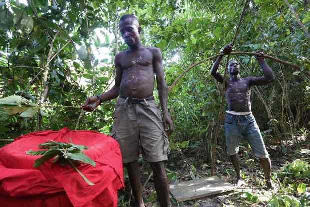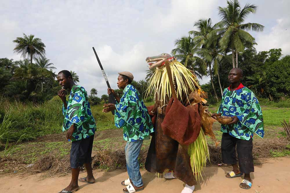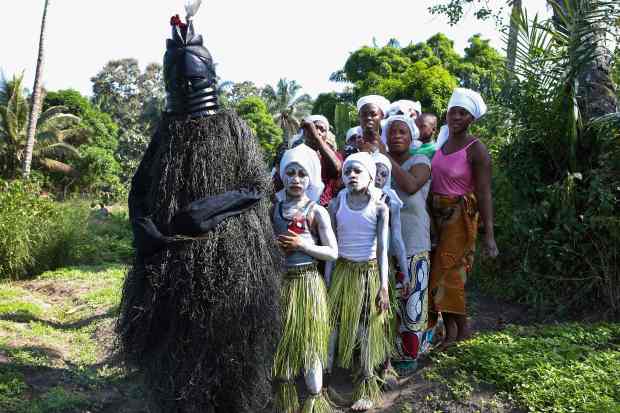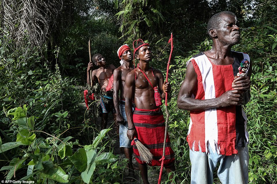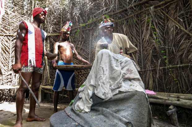 Thành viên của một “xã hội” được lãnh đạo bởi một người được gọi là “Quỷ đen” trong một nghi lễ ở làng Songo.