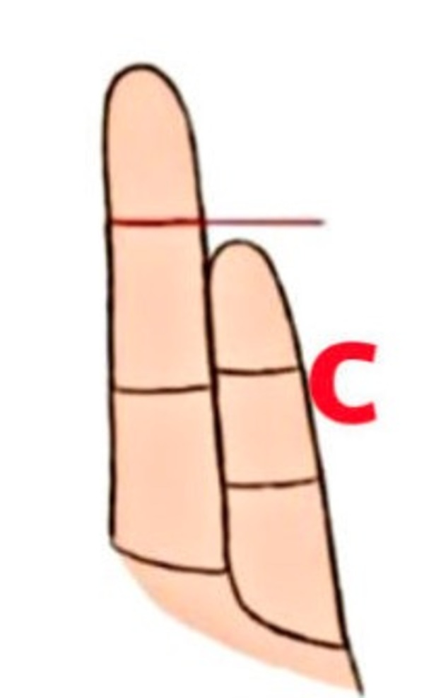 3. Ngón út ngắn hơn 2 đốt ngón áp út